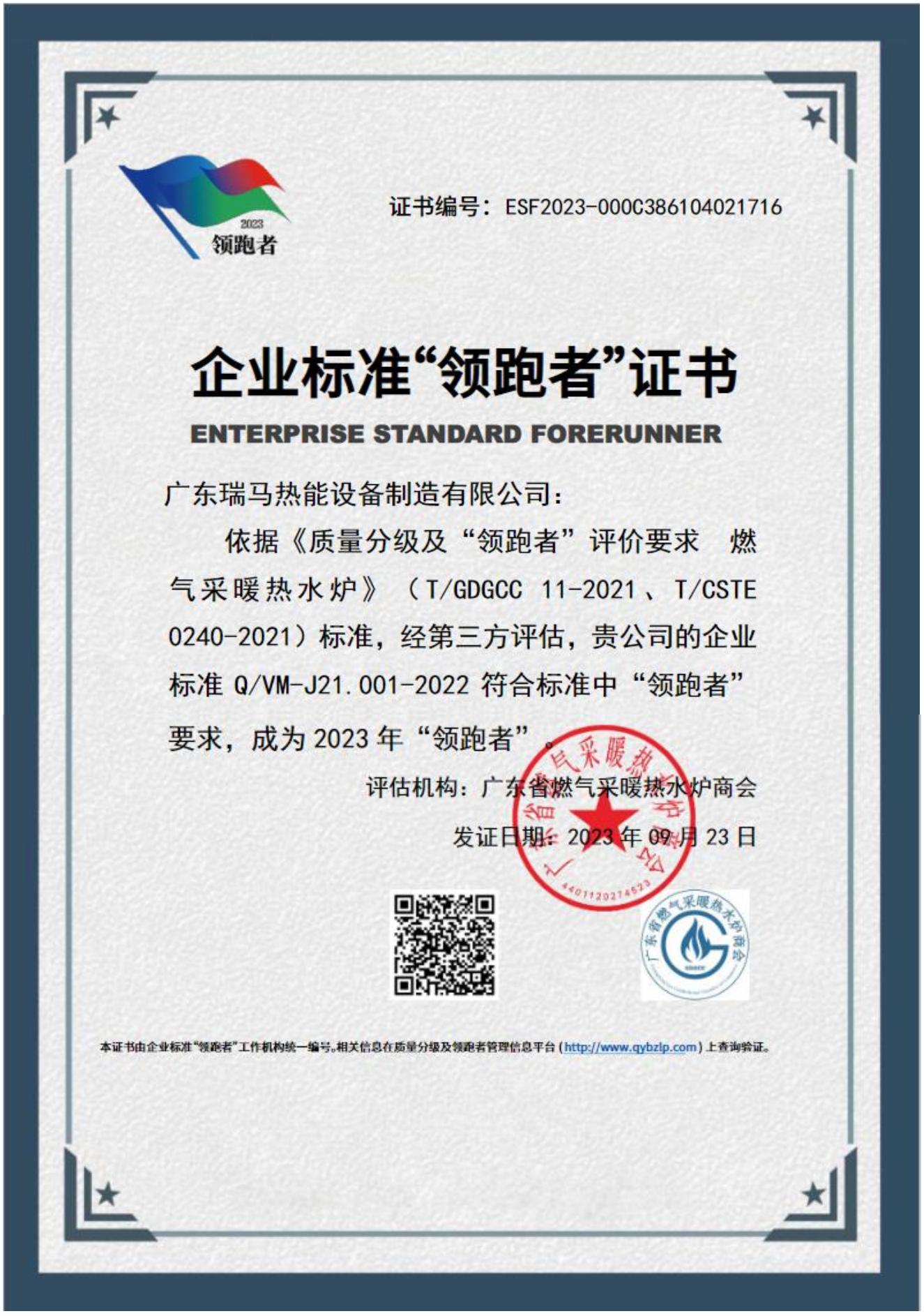 熱烈祝賀廣東瑞馬榮獲“2023年第一批燃氣采暖熱水爐企業(yè)標(biāo)準(zhǔn)‘領(lǐng)跑者’”